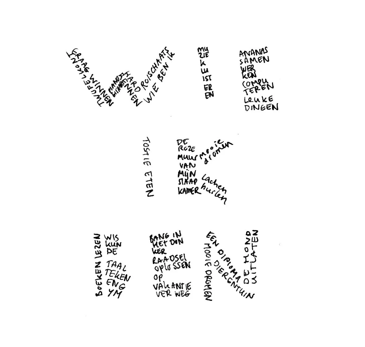 Regelmatig onwikkel ik met veel plezier een nieuwe les of lessenserie voor een bepaalde doelgroep. Van nieuwkomers praktijkonderwijs, tot de bovenbouw havo of vwo; van basisschoolleerlingen tot HBO studenten; van jong(eren) tot oud(eren). Veel prinicipes die ik gebruik in mijn lessen, zoals oog voor detail en het schrijven in beelden, zijn toepasbaar voor al deze verschillende doelgroepen. Tijdens de eerste lockdown ontwierp ik het thuiswerkboekje ‘Wie ik ben’ met creatieve en mindfulle schrijfopdrachten voor kinderen van 8 jaar tot 88 jaar.